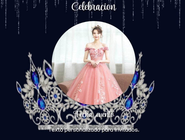 Invitación digital para XV años con corona de princesa azul zafiro y efecto cascada de diamantes